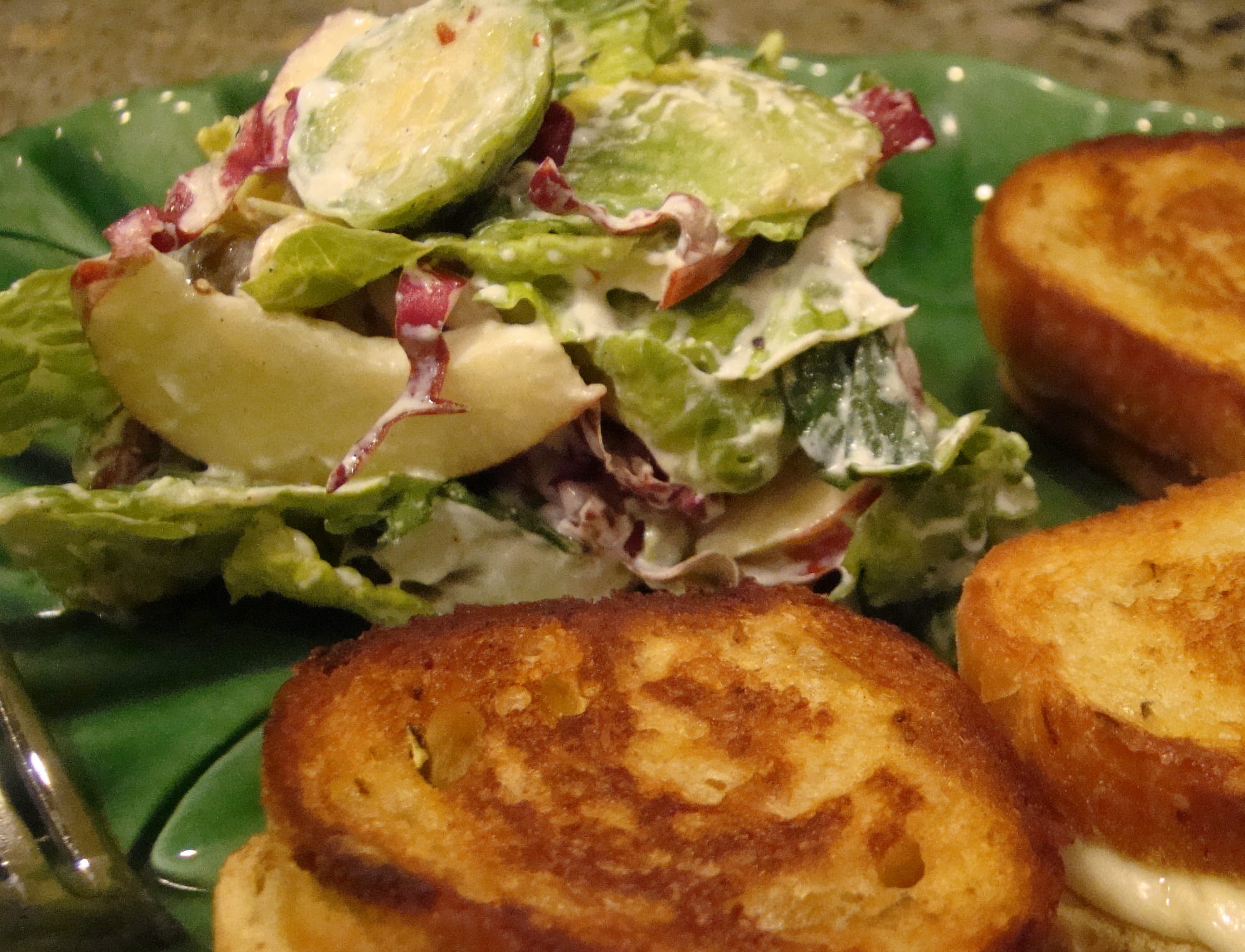 - Solata z brstičnim ohrovtom (Surov brstični ohrovt nasekljajte, dodajte trdo kuhana jajca, malo opečenih mandljev in prelijte z limoninim prelivom.)