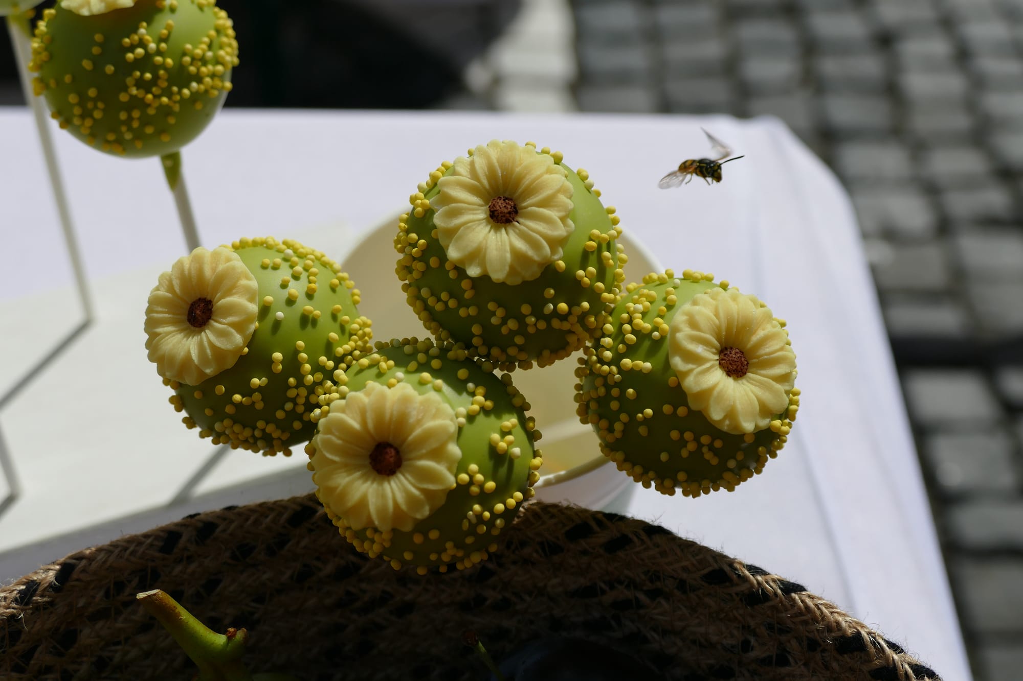 - Cvetlični motivi: Ustvarite cake pops z okraski, ki posnemajo različne cvetove ali uporabite užitne cvetove za dekoracijo. Možnosti so rožice iz fondanta, cvetlični vzorci z barvnimi glazurami ali celo naravni izgled z užitnimi cvetovi.