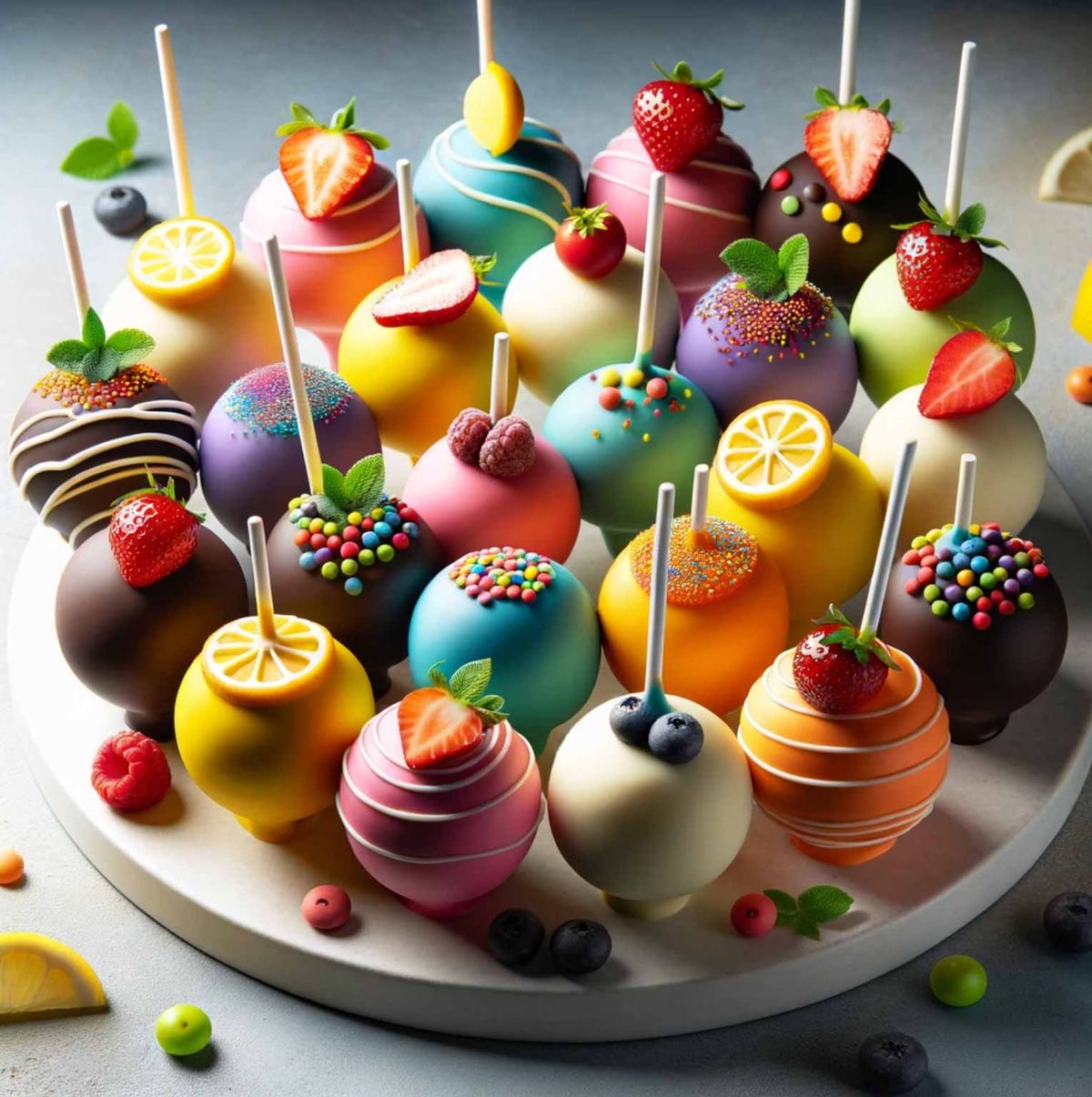 Sadni cake pops so zabavna, barvita in okusna poslastica, ki bo zagotovo navdušila na vsaki zabavi ali posebni priložnosti. Uživajte v ustvarjanju in degustaciji!