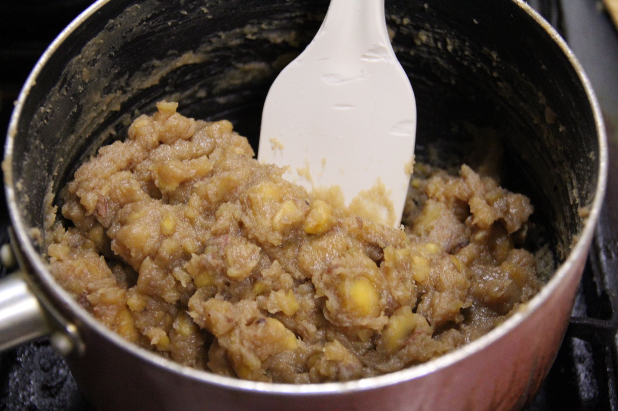 - Priprava kostanja: Uporabite svež kostanj, ga olupite in skuhajte, da dobite gladek kostanjev pire.