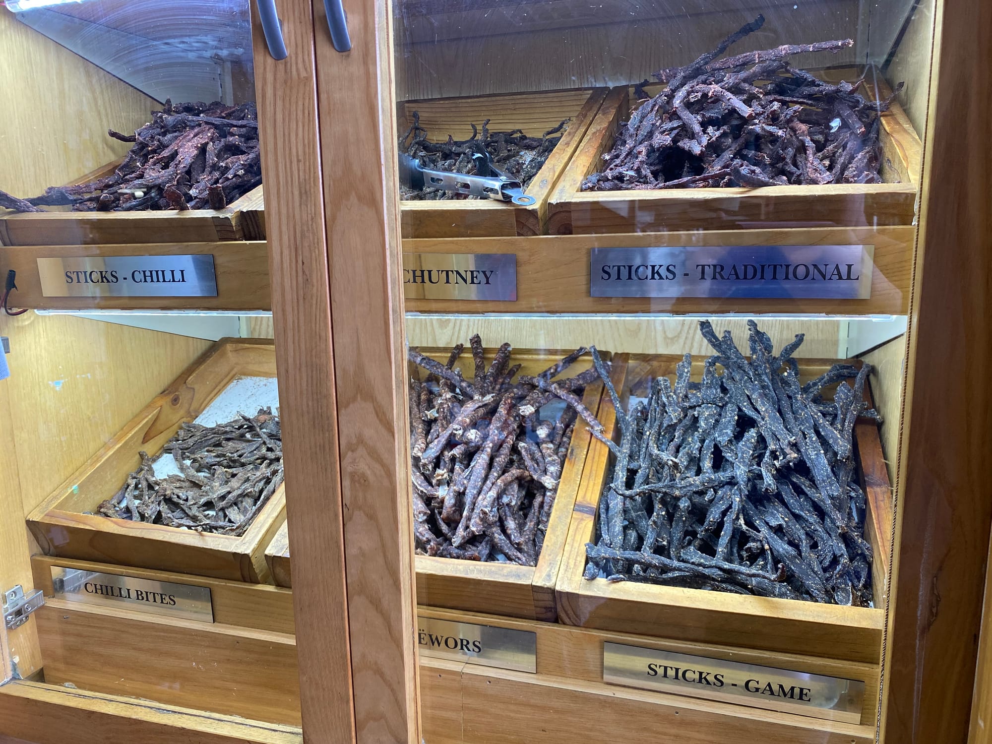 Južna Afrika: Biltong, sušeno meso, je priljubljen prigrizek po vsej Južni Afriki. Bobotie, začinjeno mleto meso s kustardnim prelivom, predstavlja manj znano, a tradicionalno južnoafriško jed.